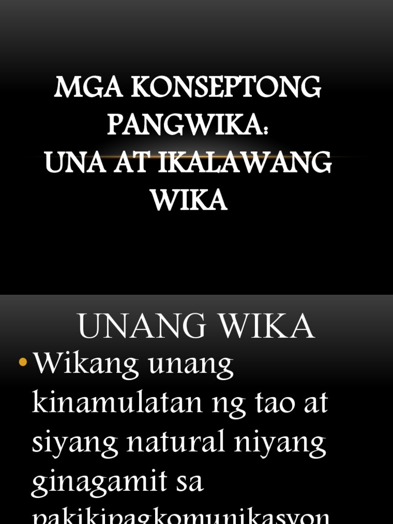 Unang Wika At Pangalawang Wika. Ang unang wika ay nagmumula ito sa kanya bilang isang mana pamana. Akwisisyon ng unang wika o Ang unang wika katutubong wikaay wika na nakukuha mula sa kapanganakan hanggang mga 7 o 8 taong gulang.