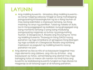 Ang pangunahing tagapagsalita sa nasabing pagtitipon tinalakay ni De Leon na ang mga kwentong bayan at ang ibat ibang uri nito tulad ng pabula epiko kababalaghan at kadiwataan fairy tales alamat mito at alamat lungsod urban legend ay maraming naituturo at. Dito inilalarawan kung paano o ano ang pinag-mulan ng isang lugar bagay pangalan o pangyayari. Ang maikling kwento ay may tatlong bahagi.