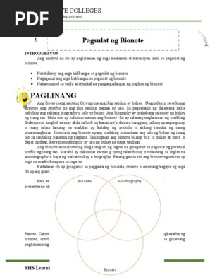Lahat ng tao ay nakakagawa ng kasalanan o mali walang perpekto kaya dapat natin silang mahalin at tanggapin. BIONOTE Ang bionote ay naglalaman ng. AUTOBIOGRAPH Y detalyadong sulatin mahaba nagsasaad ng pangyayari sa isang buhay ng tao mula kapanganakan hanggang.